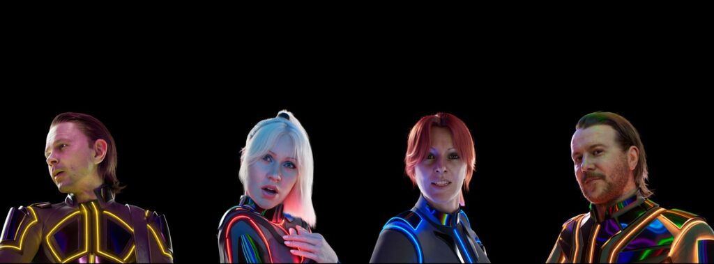 What is ABBA Voyage? A concert experience in which digital versions of ABBA – created by Industrial Light & Magic using 160-camera motion capture of the real band – perform the group’s songs to their original vocals, backed by a live 10-piece band. The ABBAtars appear as the band looked in 1979.