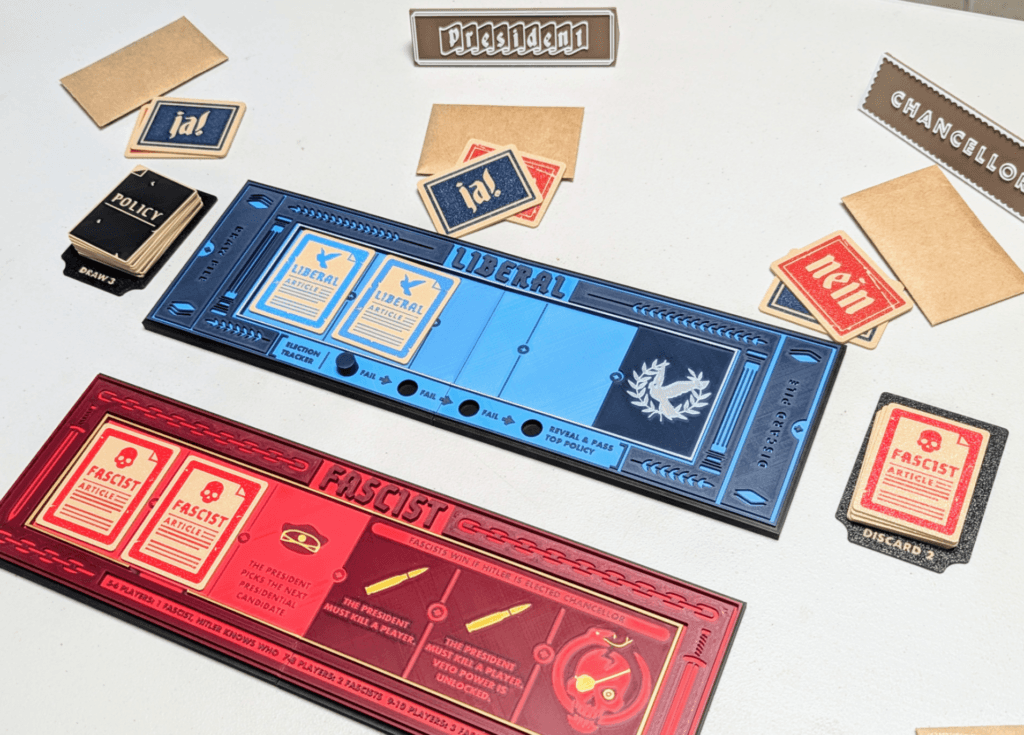 Liberals must band together to stop sneaky fascists from seizing power. You’ll either help the liberals enact five liberal policies (or take down Hitler directly!) or work with fellow fascists to push through six fascist policies (or cleverly elect Hitler as Chancellor).