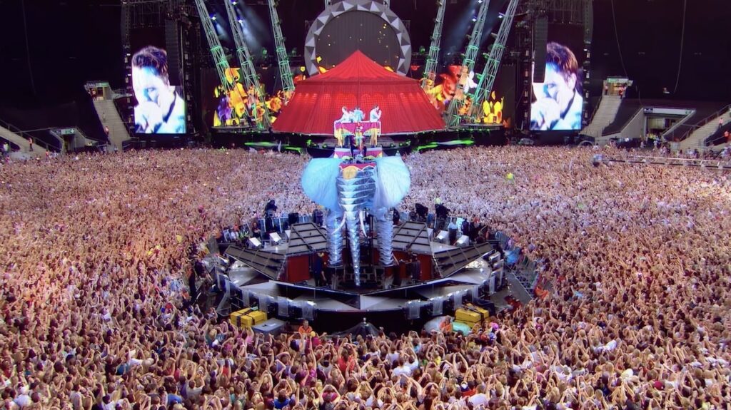 The production itself was spectacular: fire-breathers, stilt-walkers, clowns, acrobats, tap dancers and – the centrepiece that had audiences absolutely gobsmacked – a 30-foot-tall mechanical elephant. It wasn’t just a pop concert, it was a full theatrical event, and it remains one of the most ambitious live productions a British band has ever mounted.